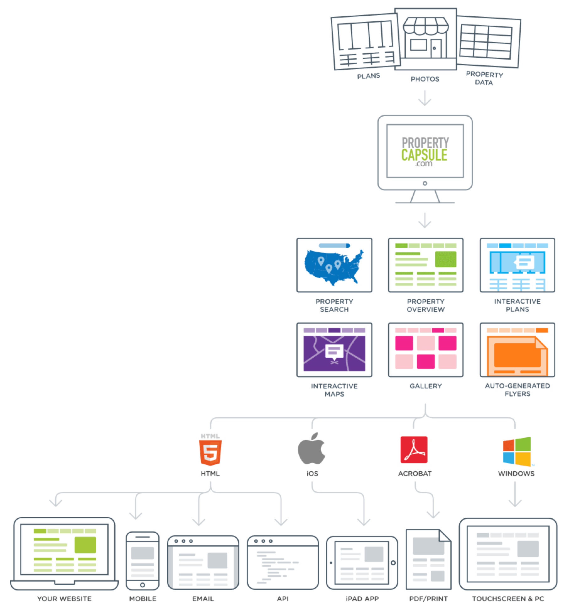 Now, all your property information is accessible on any platform, from any device. Web, mobile phone, iPad app, email, PDF, touchscreen and PC – you’ve got it.